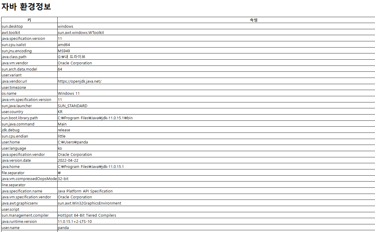 자바의 시스템 속성을 출력하는 html을 자바로 출력해보고자 한다.