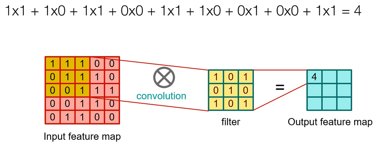 이때 가중치 w는 커널의 원소이고, 입력 x는 커널과 겹쳐지는 픽셀임을 알 수 있다.