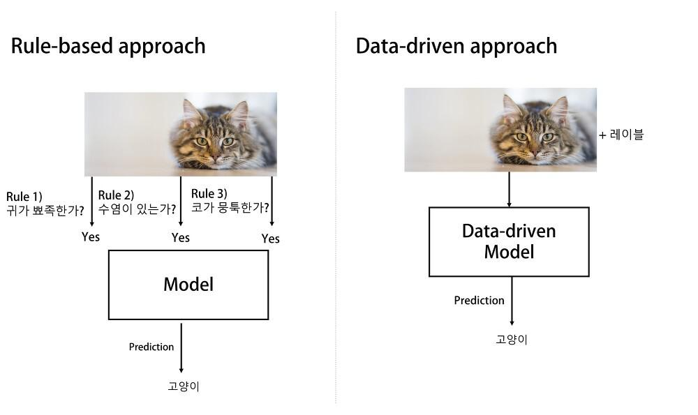 딥러닝 이전 시대의 모델들은 인간이 설정한 규칙을 따라 데이터를 구분하였다.