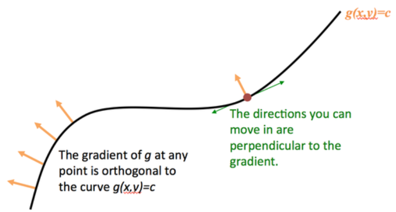 방향 미분이 0이 되는 방향은 gradient와 수직인 방향이다.