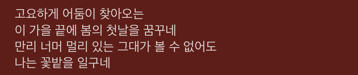 딱 가을에서 겨울로 넘어가는 날씨였어서 원래도 좋아하는 노래를 더 몰입해서 들을 수 있었다.