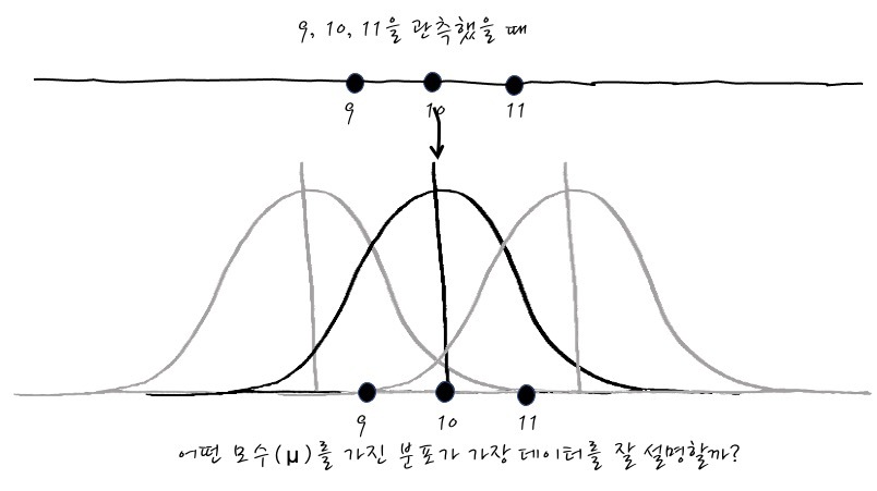 MLE 추정은 실제 값이 특정 확률분포에 포함될 확률을 최대화 하는 변수를 구하는 추정이다.